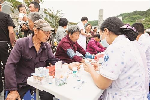 6月5日,臺州日報第四黨支部聯合臺州博愛醫院醫共體黨委,組織開展 “弘揚墾荒精神 傳承紅色基因”黨史教育暨大陳島送醫送藥送黨報活動。圖為醫療專家們熱情接待每位前來就診咨詢的村民,認真細致地做好病情診斷及指導,并為群眾免費送上了感冒、止咳、膏藥、胃藥等一些基礎醫療藥物。(雒溢凡)