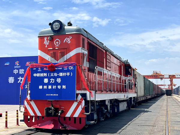 6月8日10時,滿載著100個標箱茶葉及茶系列產品的X9216次“春力號”嵊州茶葉專列,從義烏西站鳴笛啟程,經霍爾果斯口岸出境,預計10天后抵達烏茲別克斯坦首都塔什干,這也標志著長三角首趟茶葉專列成功開行。
