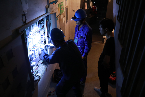 6月8日晚,國網紹興供電公司越城供電分公司工作人員前往運河人家霞西坊小區進行表計新裝。姬鵬攝