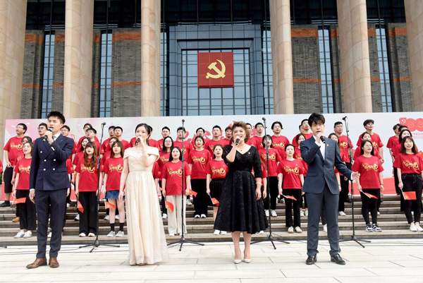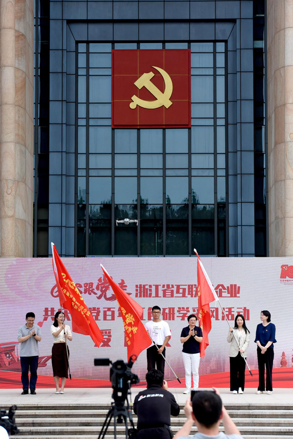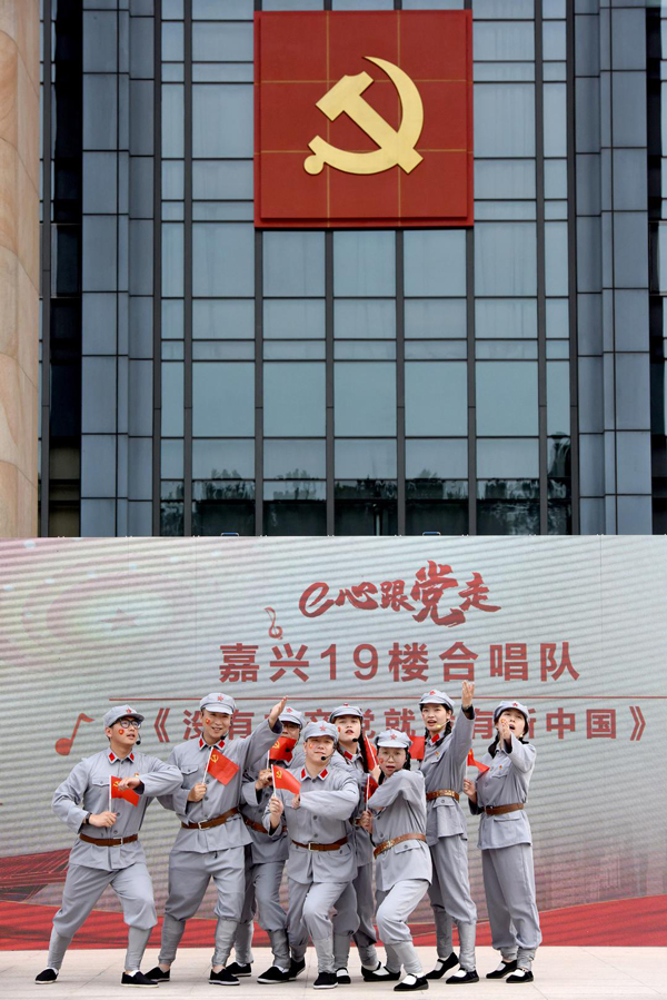 6月9日,由浙江省網絡文化協會主辦,杭州市委網信辦、嘉興市委網信辦承辦的“E心跟黨走”杭嘉自媒體共慶建黨百年合唱盛典在嘉興南湖革命紀念館北廣場舉辦。來自杭州、嘉興兩地的互聯網企業組織的合唱團隊輪番上場,共同慶祝中國共產黨百年華誕。