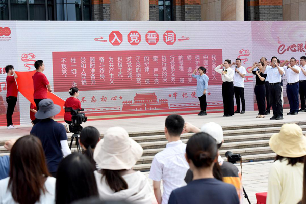 合唱盛典上,來自杭州、嘉興兩地的多位互聯網企業黨組織負責人代表領誓,帶領大家重溫了入黨誓詞,表達了更好地為群眾服務的心聲。