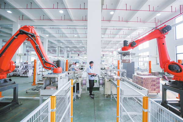 湖州南潯區南潯鎮久盛地板有限公司工人們連日來在自動化生產線上趕制地板,準備銷往杭州、上海。該企業堅持科技發展,有7條國際先進精密涂裝生產線,今年又新增4臺自動化機器手臂,加大科技創新力度,以技術、模式創新推動傳統產業轉型升級。(陸一平)