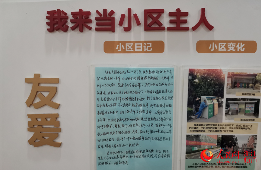 福田花園小區住戶以“小區日記”記錄身邊的變化。人民網 金忠耀攝