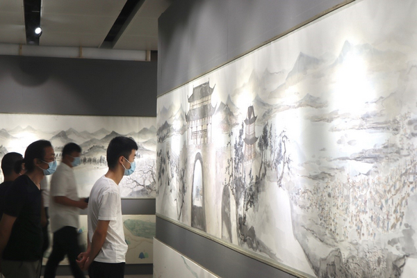 此次展出的“新時代清風廉路圖”百米長卷,由中國美院創作團隊耗時近一年精心打磨而成,以水墨山水的形式,全景展示紹興全市域詩路節點上的清廉文化元素,讓詩文和清風在長卷中融合嬗變出獨特的韻味。