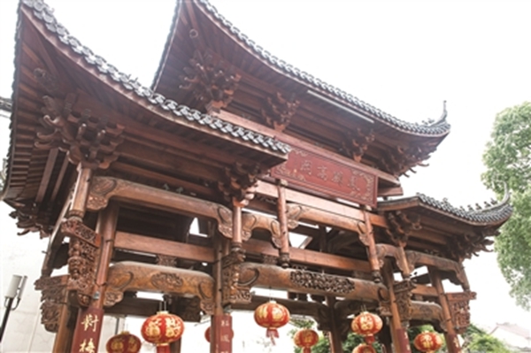 劉伯溫題寫的“鳳翙高崗”牌匾高懸在牌樓之上。鳳川街道供圖