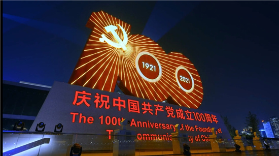 慶祝建黨百年華誕巨型燈光藝術標識。上海發布微信公眾號 圖