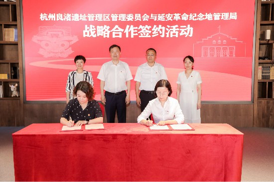 7月6日是第二個“杭州良渚日”。當天上午,杭州良渚遺址管理區管委會與延安革命紀念地管理局簽訂戰略合作框架協議,雙方將充分發揮各自領域的特色與優勢,以“五個一”合作交流活動為主要載體,賡續中華精神、共筑文化自信。