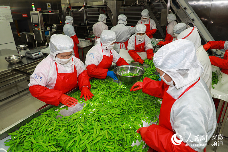 工人將準備出口的冷凍蔬菜進行分揀打包。人民網 張俊攝