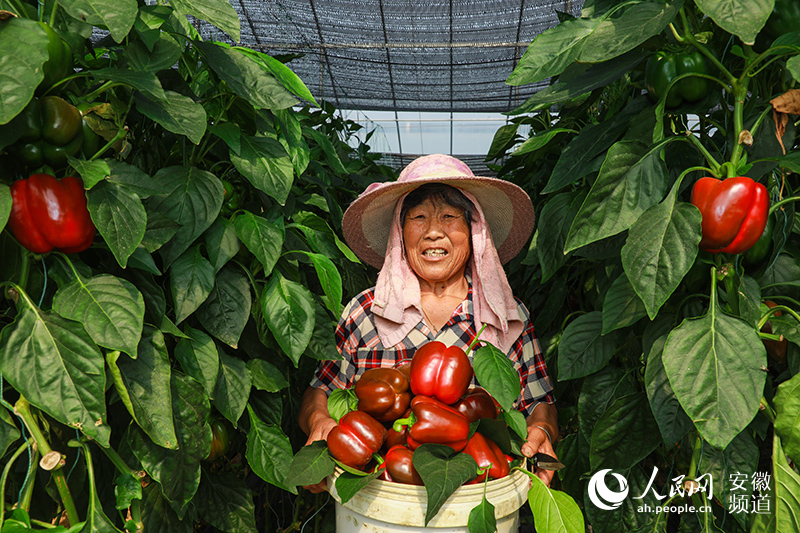 收獲五彩椒。人民網 張俊攝