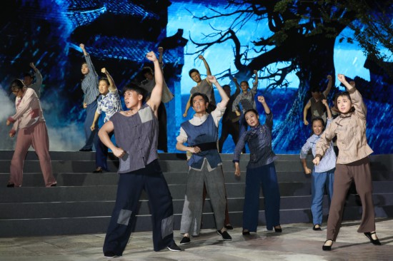 沉浸式舞臺上,一幕幕起承轉合的劇情、一曲曲扣人心弦的音樂、一個個有血有肉的人物,藝術重現了共產黨人不怕犧牲、革命理想高于天的大無畏精神,帶領著現場每一位觀眾穿越時空,重回漁潭暮耕深處那段血與火的壯烈歲月,再現那段氣壯山河的英雄史詩。