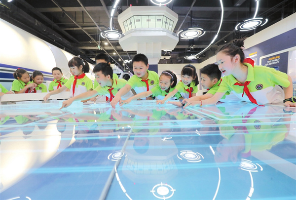 湖州市德清縣逸夫小學近日組織學生走進通航智造小鎮通用航空科普體驗館,開展暑期“樂享科技魅力”科普活動。小學生們體驗航空科普裝置,學習航天航空知識,參與科普游戲活動,豐富暑假生活。(謝尚國)