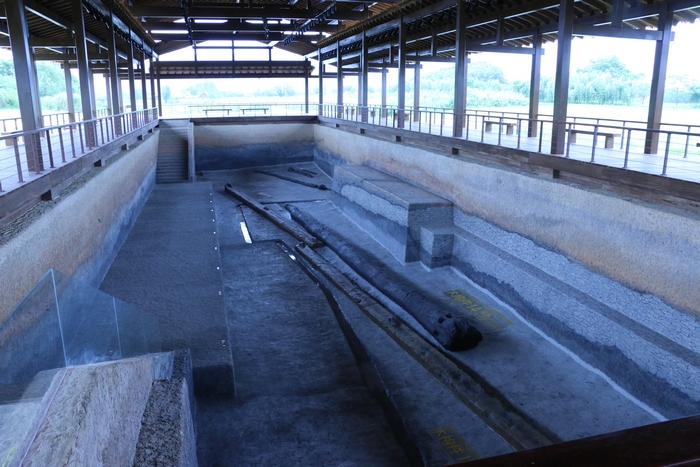 7月8日,良渚古城遺址“宮殿巨型木構”復原展示區正式對外開放,迎來游客參觀熱潮。這些長短不一、神秘的巨型木構件原件發掘于莫角山宮殿東側的鐘家港古河道中,最長的甚至高達17.2米。