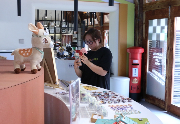 游客打卡良渚文創店。人民網 王麗瑋攝