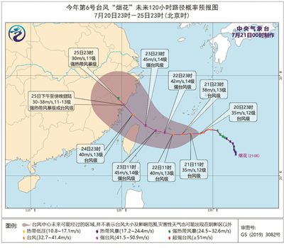 今年第6號臺風“煙花”未來120小時路徑概率預報圖