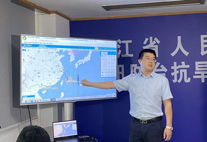 浙江省應急管理廳指揮中心副主任童華斌介紹臺風情況。陰家祺攝