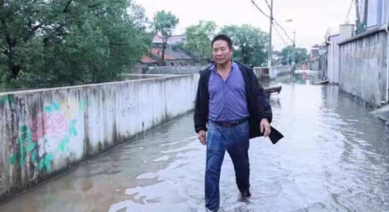 7月25日,村里的郭塘河出現河水倒灌的現象,哪里有危險,哪里就能看到馮建良的身影。