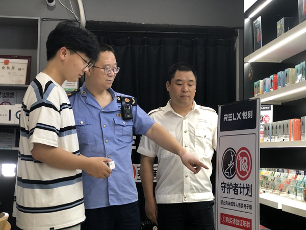 江山市煙草專賣局聯合市場監督管理局對電子煙銷售場所展開專項檢查。周育梅攝