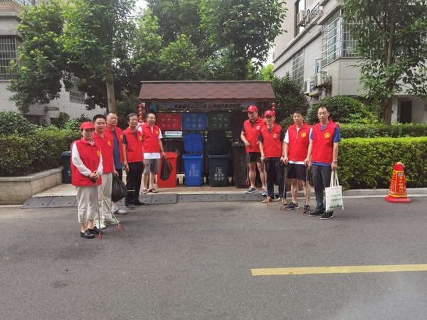 寧?h煙草專賣局退役軍人黨員志愿者積極參與結對社區衛生環境整治活動。楊培杰攝