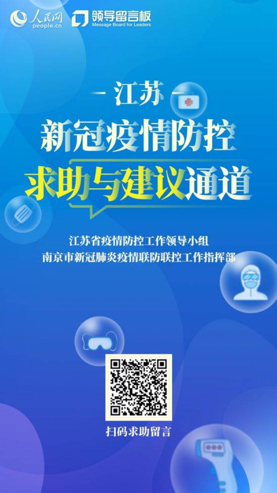 人民至上,生命至上。江蘇省、南京市對此民意通道高度重視,人民網也安排了專門團隊,第一時間接收、梳理、轉交人民群眾反映的各類留言,共同為打贏這場疫情防控阻擊戰貢獻力量。如您在疫情防控期間生產生活中遇到“急難愁盼”,請上“江蘇新冠疫情防控求助與建議通道”反映。
