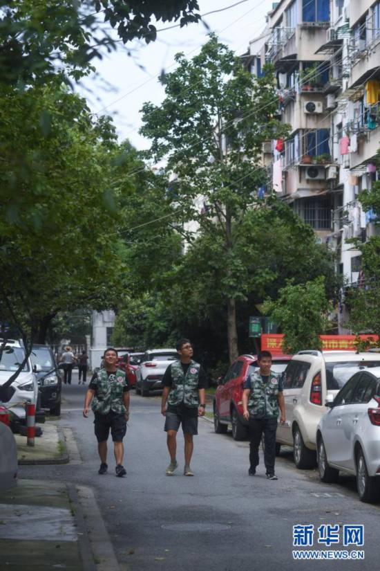 7月30日,退役軍人服務站的輪值站長們在華豐社區巡查。