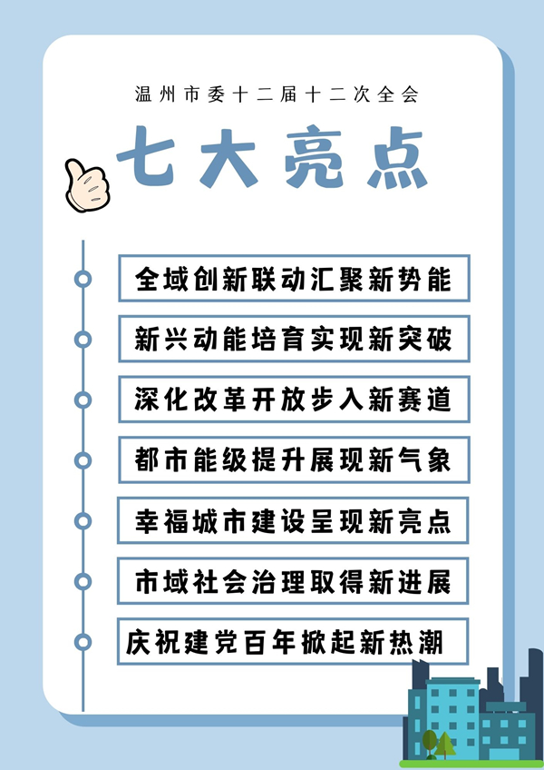 打造高質量發展建設共同富裕示范區市域樣板和高水平推進文化溫州建設的大幕已經拉開,溫州將在新百年新征程上交出趕考新答卷,為續寫新時代溫州創新史、爭創社會主義現代化先行市繼續奮斗。(康夢琦根據溫州日報整理)