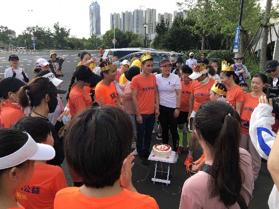 視障、聽障人士和志愿者們一起自由起跑,向著終點不斷沖刺,殘健融合健康跑,在健身的同時不斷放飛著自己的心靈,賽后大家還在一起過了一個特殊的生日會,共同度過了這個難忘的“全民健身日”。