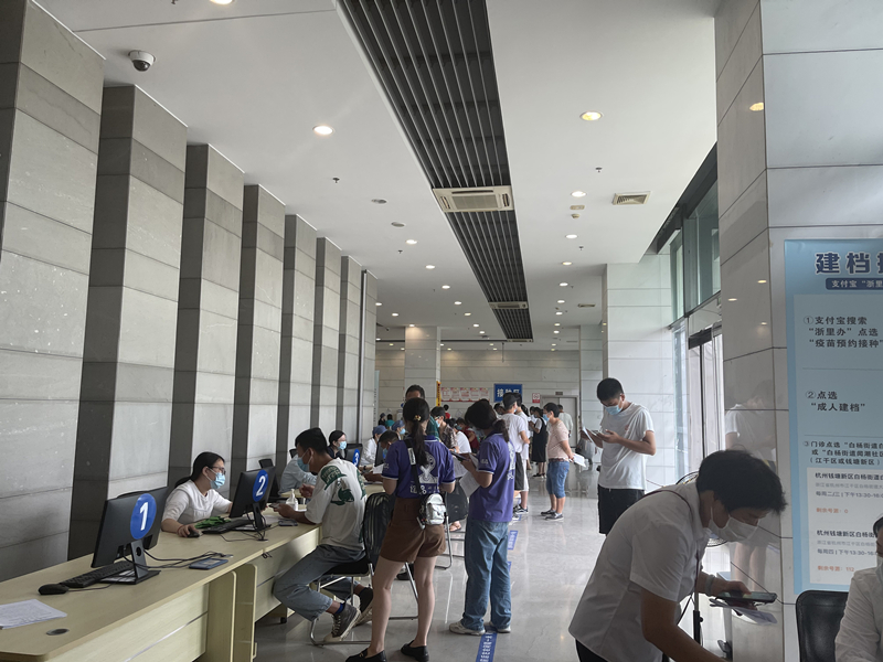 位于錢塘區城建文化館的新冠疫苗方艙臨時接種點內,市民正有序接種疫苗。人民網 王蕭蕭攝