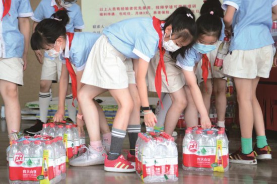 8月14日,嘉興市實驗小學學生在嘉興市區開展“小舉動大溫暖,學生‘愛心冰箱’現身嘉興街頭”活動。小小的“愛心冰箱”承載著孩子們對戶外工作者的關愛,送出的每一份飲品也體現了城市的溫情。(孟多多)