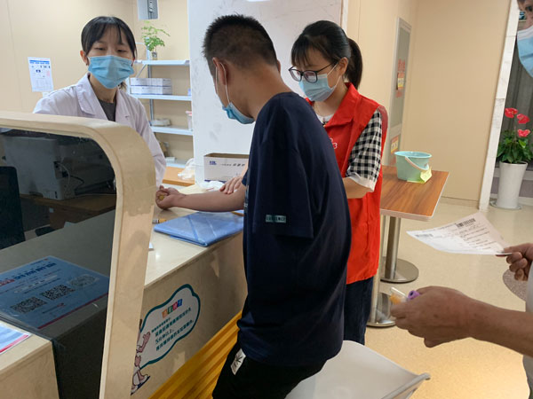 志愿者講解體檢流程。蔣曉琴攝