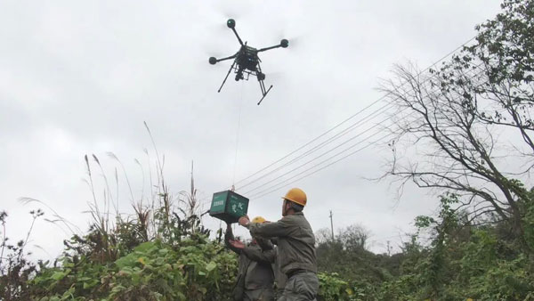 近日,溫嶺市石塘鎮中心漁港一條10千伏線路跳閘,造成周邊30多戶用戶停電。據監測分析,故障很可能是由大風導致電線斷落造成的,后經巡檢無人機快速定點巡視,證實有橋接引線斷落。石塘供電所搶修人員抵達現場后,發現電桿上的懸式瓷絕緣子也在風雨中受到損壞,需要更換。由于事先沒能預料到,隊員們出發前沒有帶上足夠的物資,若回去取,往返至少需要1個半小時。這時,搶修班長陳青毅通知指揮部,申請獲得啟用“空中云倉”許可。配送員完成物資裝載后操縱無人機載貨升空,飛躍5.2公里(直線距離),抵達搶修現場。整個過程僅耗時20分鐘。這就是國網溫嶺市供電公司在石塘區域開創的“空中云倉”搶修模式。