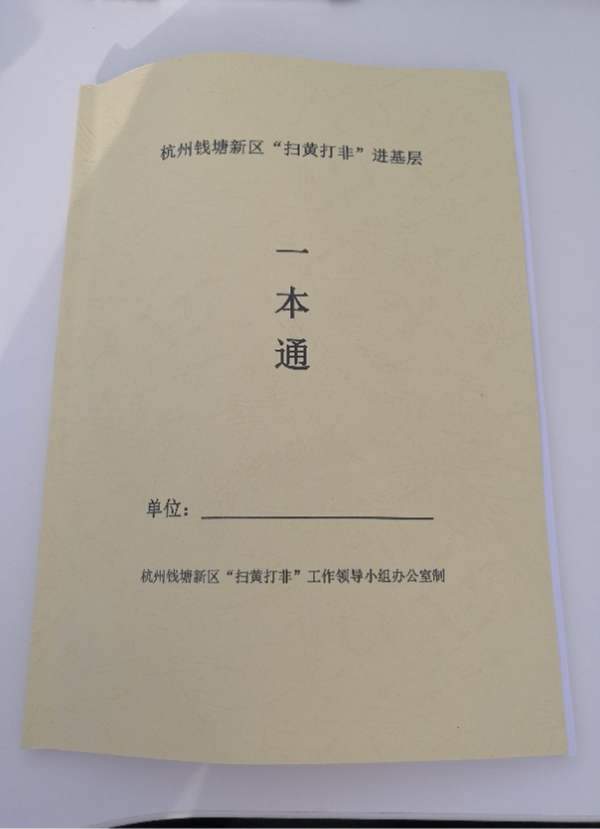 錢塘新區“掃黃打非”進基層一本通封面。錢塘區宣傳部供圖