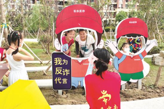 8月24日,一場趣味反詐活動在嘉興經開區長水街道首個反詐主題公園——中南公園舉行。社區居民通過趣味打卡游戲參與反詐宣傳,提升反詐意識。(王蓉)