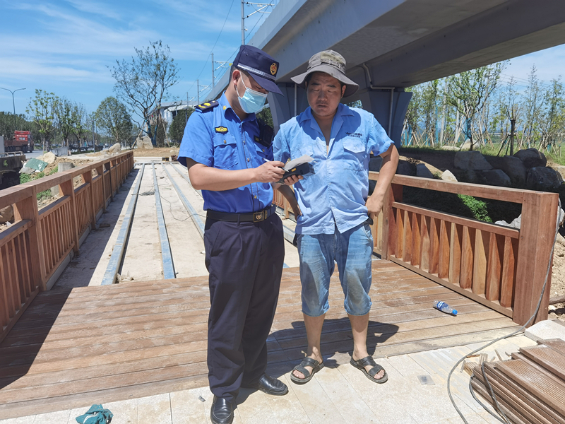 不久前,余杭區綜合行政執法局執法隊員接到群眾反映,某項目施工單位在沒有辦理地鐵保護安全防護方案的情況下,擅自在地鐵保護區內違規施工。執法隊員立即前往現場勘察。經核實,該項目是320國道改建工程,施工方目前正在進行路基的輔裝作業,現場有多臺挖掘機作業,施工位置距16號線隧道最近水平位置約19米。