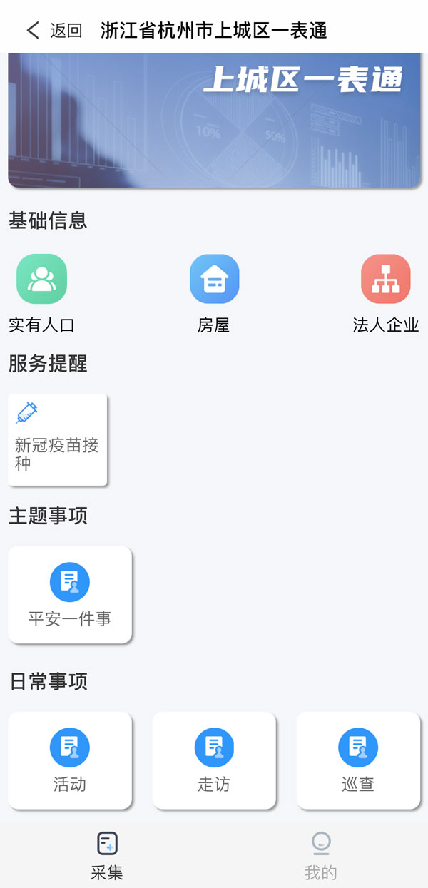 在上城,“一表通”的服務“觸角”延伸到了社會治理的方方面面,涵蓋沿街商鋪、住宅、樓宇、工地四大領域的“平安一件事”場景,讓社工、網格員在一次巡查中,同步完成多條線任務與相關字段采集,實現綜合查一次、最多錄一次。