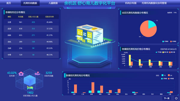 “舒心育兒”數字化管理服務平臺則是針對嬰幼兒的成長與照顧打造的場景應用。平臺不僅可以查詢區內所有托育機構的信息,實現“一鍵入托”,還打通了醫院兒童保健信息,展示嬰幼兒成長曲線和發育水平,讓家長實時關注,獲得體檢結果和指導意見。此外,在治理端平臺可以全景展示余杭區全區托育機構,掌握嬰幼兒分布、出生人口變化趨勢、嬰幼兒喂養等實際情況,為后續促進托育機構合理布點提供了有力保障。