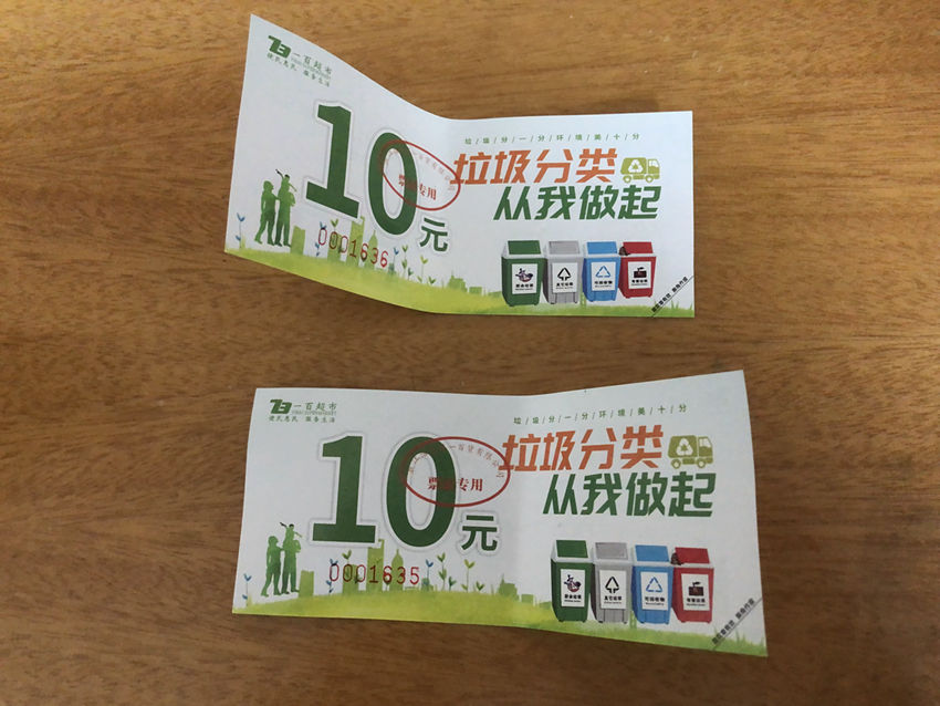 “每100積分等于1塊錢,社區的居民將分好垃圾的照片上傳到‘分好啦’中可以獲得20個積分,周末環保積分日可以獲得50個積分。居民可以用積分到雄風和一百兩家連鎖超市的39家門店中直接消費!变綎|街道“每日一袋”運營負責人宋迪說?恐诸,張水軍一年可以獲得11000積分,也就是110元。
