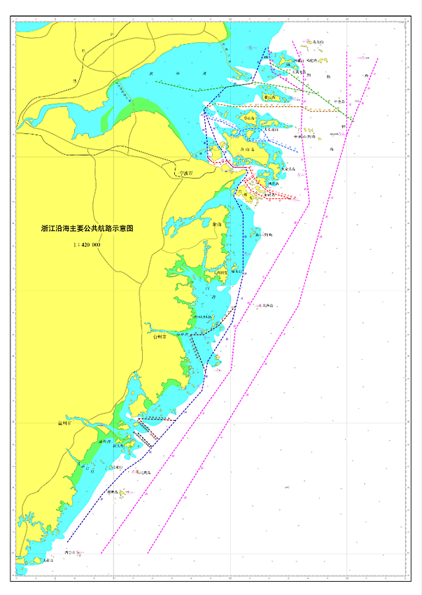 優化調整后的浙江沿海主要公共航路圖。浙江海事局供圖