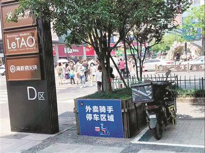 最近,不少市民發現杭州西溪銀泰不僅增加了不少非機動車停車位,特別是為“外賣騎手”開辟了專屬車位。