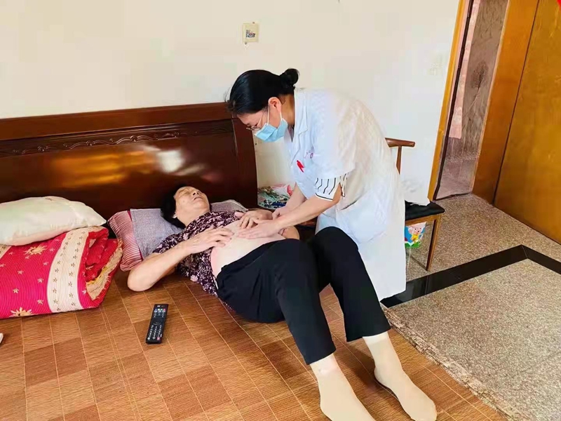 胡燕紅為劉阿姨檢查傷口。羅店鎮中心衛生院供圖