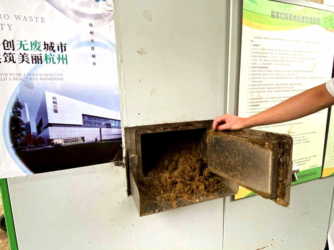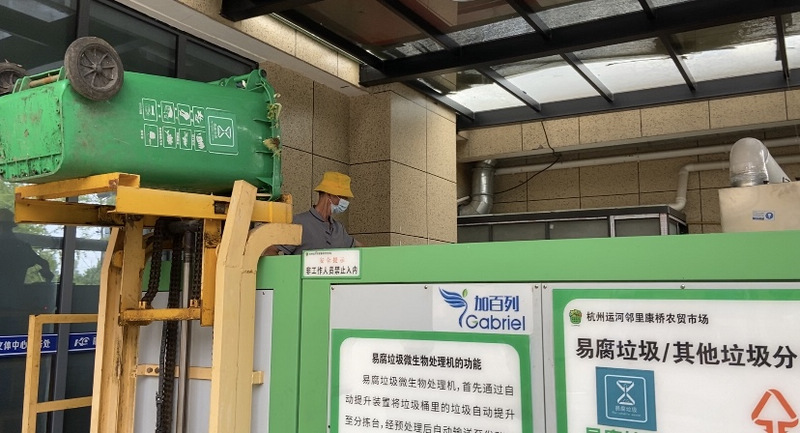運河鄰里康橋農貿市場易腐垃圾微生物處理機。人民網 方彭依夢攝