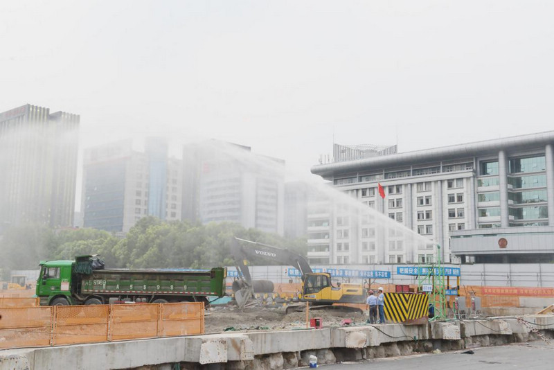 此外,今年濱江區還將完成50個“無廢工地”的建設,提升文明施工形象,助力打造“無廢城市”。目前,在杭州濱江區政府南廣場地下停車項目(一期)工程的工地上,各項施工正熱火朝天地進行著。對于周邊居民來說,工地帶來的最大困擾就是土方開挖時的揚塵,而記者發現在這個工地上,無論是圍擋外還是工地內,幾乎看不到揚塵。據了解,為減少土方開挖階段的揚塵,該工地購置了高壓水炮+噴淋系統,當施工過程中揚塵擴散較大時,系統會自動打開,通過濕法作業,從源頭進行控制。