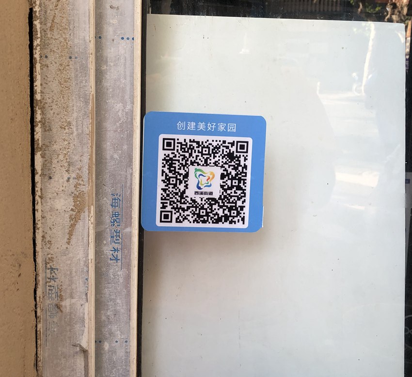 馬塍路13號小區門前的“創建美好家園”二維碼。人民網 陳萬泉攝