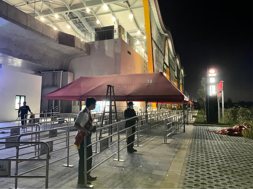 鹽官站員工連夜搭鐵馬陣和防雨棚。浙江軌道集團海寧分公司供圖