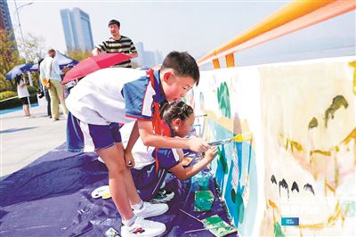 來自四川廣元沙河鎮小學的趙夢婕和王崇浩說,“知道2022年要舉辦杭州亞運會,但沒想到我們有機會能來杭州,參與杭州亞運公益活動,在錢塘江堤岸上用畫筆描繪心中的亞運夢想真的很開心。舉辦亞運會是每個中國人的驕傲,希望我們的家鄉能夠跟杭州一樣,越來越好!