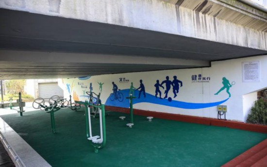 既要強投入,還要重細節。市河中洲橋西側的橋下空間曾是“臟亂差”,后來鎮里加以改造,增設了不少健身器材,轉而成為網紅打卡點。沿著健康步道往前,盡頭處是湘溪公園,偌大的綠地空間,成就了很多體育愛好者,他們三五成群,相約在這里打太極拳、練太極劍,還有人在河邊做早操......“原先我喜歡喝茶下棋,現如今每天騰出1個小時出來鍛煉,成了我生活中最重要的一部分!本用裆蜻B根說。