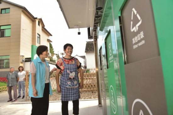 9月25日下午,在嘉興南湖區鳳橋鎮聯豐村智能分類驛站,村民在垃圾分類督導員的指導下,前來體驗垃圾智能投放的便利。作為南湖區首個正式投入使用的村級數字化智能分類驛站,村民只需要刷臉就能夠打開垃圾房的投入窗口,便捷又衛生。(徐志達、萬佳。