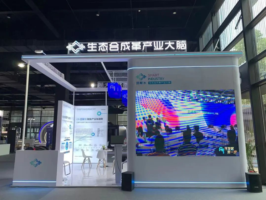 據工作人員介紹,展臺還設置了發展理念區和應用體驗展區,聚合了企業智腦、產業鏈圖譜、能耗監測等應用場景,集中展現產業大腦如何融合政府側和企業側,貫通生產端與消費端,為合成革企業生產經營提供數字化賦能,為產業集群提供數字化服務,為經濟治理提供數字化手段。