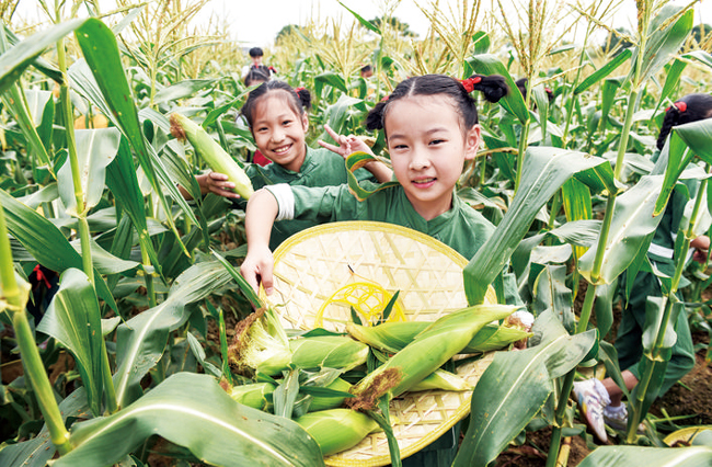 國慶期間,金華開發區羅埠鎮在山下陳村舉行首屆“爆漿牛奶”水果玉米認購節暨采摘研學游發布會,100多畝水果玉米采摘基地迎來不少學生參與,體驗田間采摘的樂趣,享受剝葉即食的快樂。去年,山下陳村8萬棵水果玉米全部售罄,為村民創收17.5萬元。(李建林)