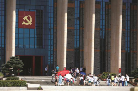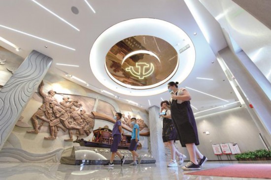 在嘉興秀洲區新塍鎮嘉興地方黨史陳列館,市民帶著孩子感受信仰偉力。