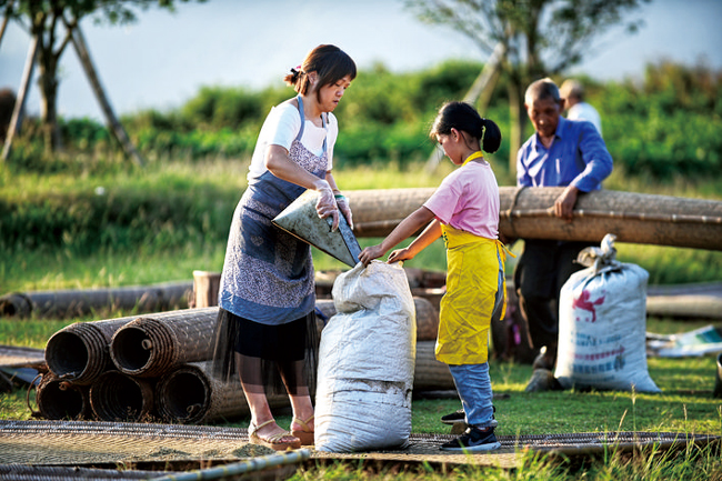 近日,金華市磐安縣尖山鎮烏石村曬場上,一些村民正在收納曬好的稻谷。金秋十月豐收季,當地農民晾曬收獲的稻谷,享受豐收的喜悅。(胡肖飛)